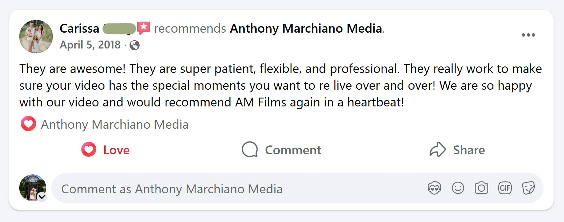 "You can tell so much heart goes into the final project, making it so special and just a perfect product! From one former bride to a new Bride, hire Anthony. You will never regret the decision!”